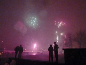 31.12.2009 Plötzlich haben alle Schiffe auf dem Rhein laut gehupt. Der Himmel verfärbte sich immer kunterbunter. Es knallte überall. Gut gelaunte und jubelnde Menschen waren massenhaft auf den Straßen verteilt. Wow. Was für ein Feuerwerk. Weder der Nebel noch der Schneeregen konnte die gute Stimmung stören. Sylvester in meiner Heimatstadt bietet eine besondere Atmosphäre. Brrrr…..Plötzlich …