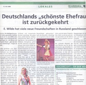 Russland Misswahl Zeitungsartikel von Juni 2008